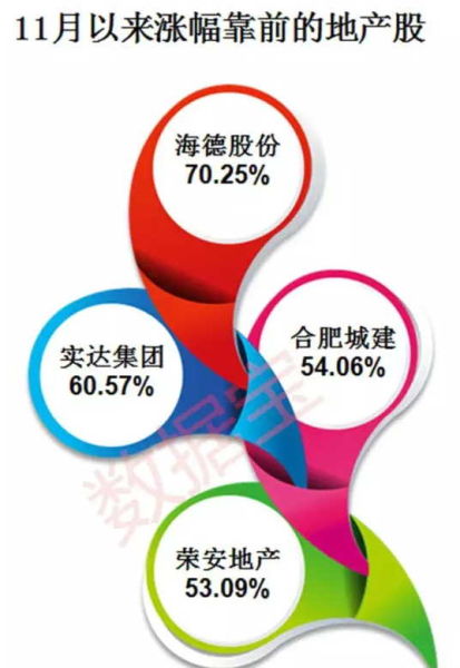 11月以来房地产股平均涨11.34%,大幅高于同期上证指数4.56%的涨幅。另外,与房地产相关的行业,如有色金属11月以来平均上涨10.45%,建筑装饰行业涨7.87%,建筑材料行业涨9.87%,而钢铁业表现不佳,11月以来仅上涨3.44%。