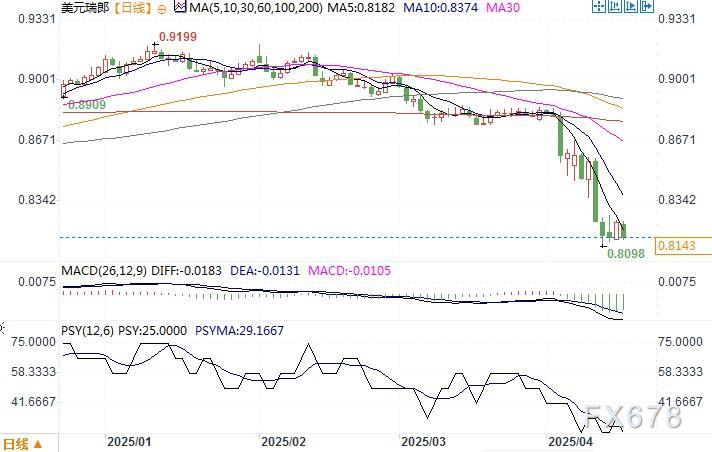 美元兑瑞郎日线图 来源:易汇通