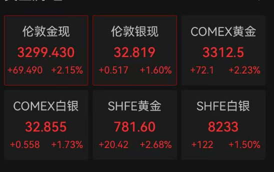 4月16日,现货黄金快速拉升,一度突破3300美元/盎司关口,再创历史新高,目前报3299.43美元/盎司。COMEX期货黄金升破3300美元/盎司,续刷历史新高,目前报道报3312.5美元/盎司。