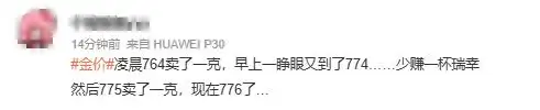 另一方面,买金条的投资者倒是赚了不少,杭州有投资者短短两周,就赚了7万。