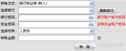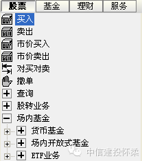 网上交易操作流程 【步骤一】登陆中信建投证券官方网站:www.csc108.com 【步骤二】点击“软件下载”(见图1) 【步骤三】在网上交易委托专栏下,点击最新版“中信建投网上交易极速版(通达信)”(见图2)进行下载并安装。 图1 【步骤四】交易软件安装完成后,打开交易软件,输入资金账号、交易密码和验证码,点击登录。(见图3) 【步骤五】在操作页面左上角选择您需要的操作项目进行操作(见图4、图5) 【步骤六】银证转账:输入银行密码、资金密码和转账金额,点击转账。 【步骤七】股票交易:点击股票买入,输入证券代码、交易价格和数量,点击买入下单。 手机交易操作流程