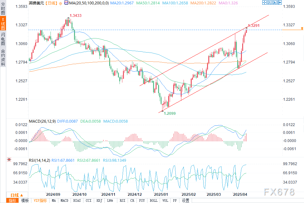 本周,随着美元指数回落,英镑/美元跃升至1.3291的盘中高点,为自去年10月3日以来的最高水平。