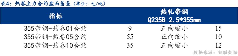 10日市场热卷10合约与355带钢价差正向缩小12元/吨 ,热卷05合约与355带钢价差正向缩小10元/吨。