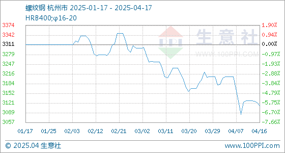 4月17日生意社螺纹钢基准价为3112.22元/吨