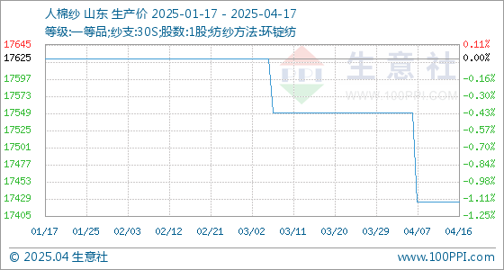 4月17日生意社人棉纱基准价为17425.00元/吨