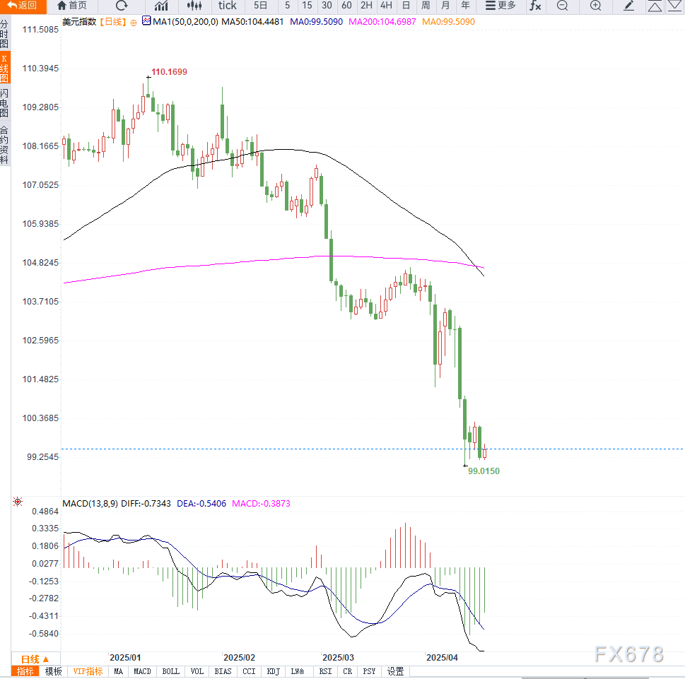汇通财经APP讯——周四亚洲交易时段,美元指数维持在99.5附近,预计将连续第四周下跌,反映出市场对美国宏观政策和贸易策略不确定性的普遍担忧。