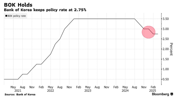 通胀抬头与韩元贬值双重夹击韩国央行“按兵不动”但关税阴云下倾向降息路径