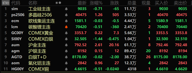 金属普涨伦锡、多晶硅涨幅居前金价续刷历史新高铁矿涨1.63%【SMM午评】