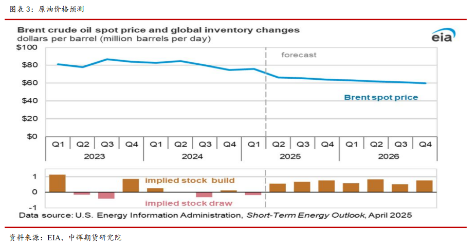 油价中枢继续下移,但价格下降速度和幅度放缓;全球原油库存将从2025Q2 开始累库,库存上升将会持续到 2026 年。