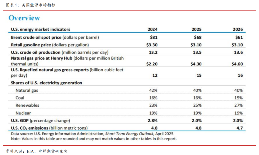 EIA 4月能源展望核心观点