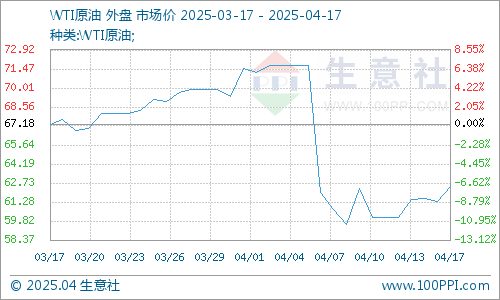 原油市场多空因素交织,基于目前美国关税政策的后续影响,原油可能长期进入新的周期。供需平衡将会被打破,重新进入再平衡的过程中,短期内原油价格震荡调整。截止4月16日,美国WTI原油期货主力合约结算价报62.47美元/桶,布伦特原油期货主力合约结算价报65.85美元/桶。