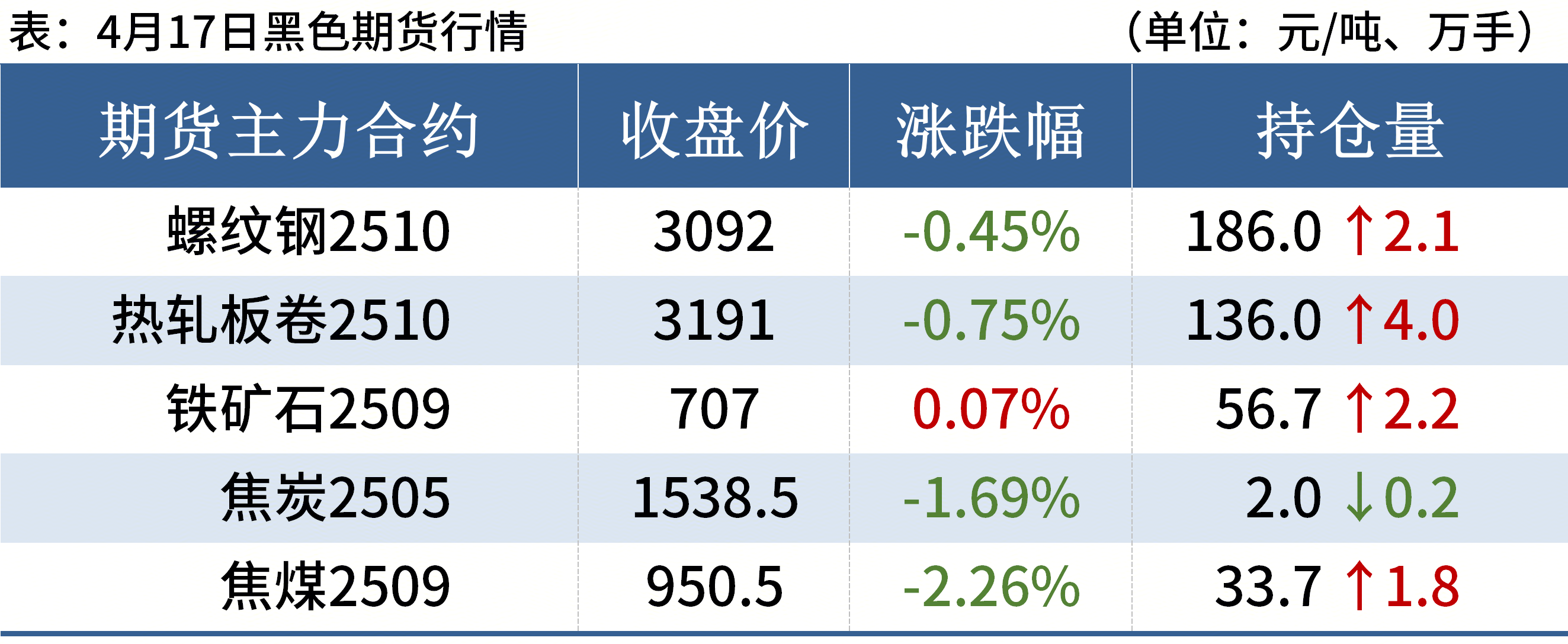 中厚板:4月17日,全国24个主要城市20mm普板均价3544元/吨,较上一交易日下跌2元/吨。从需求端来看,传统旺季表现平淡,终端采购以按需补库为主,市场投机需求低迷,下游对高价资源接受度有限。综合来看,近期受外围政策频繁扰动,增加市场不确定性因素,市场情绪不稳,预计18日中厚板价格窄幅趋弱运行。