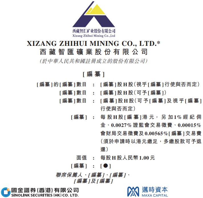 据港交所4月17日披露,西藏智汇矿业股份有限公司(以下简称:智汇矿业)递表港交所主板,国金证券(香港)、迈时资本为其联席保荐人。