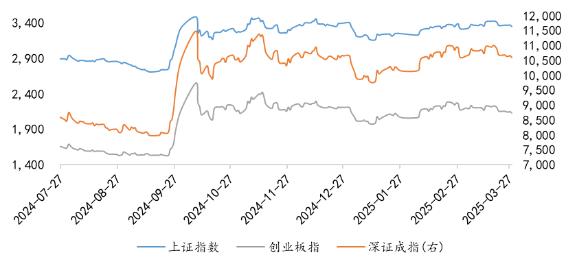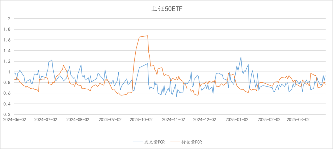 2025年1月1日-3月28日,ETF期权标的走势小幅分化,1至2月底,科创50ETF在半导体板块走强带动下领涨,3月份进入调整阶段,目前横盘在55日线附近,波动相对更加剧烈;而权重股上证50ETF和沪深300ETF相对稳健,先跌后逐步反弹,在3月下旬震荡走低。1月1日-3月28日,上证50ETF收持平,沪深300ETF收跌0.35%,中证500ETF涨3.3%,科创50ETF涨3.44%。