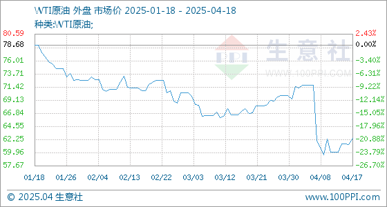 4月18日生意社WTI原油基准价为62.47美元/桶