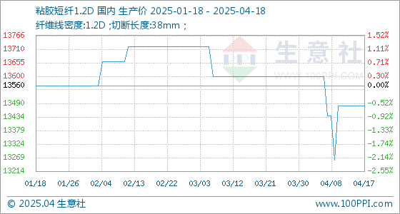 4月18日生意社粘胶短纤1.2D基准价为13480.00元/吨