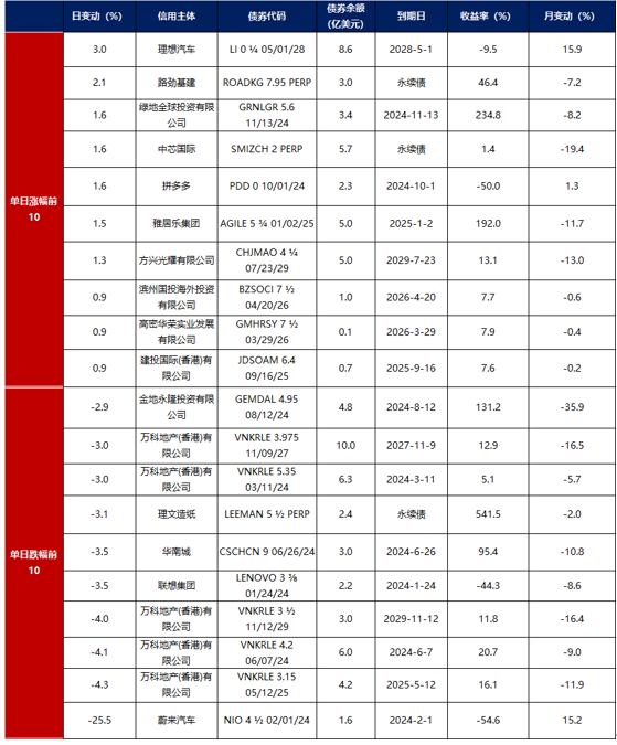 3.中资美元债每日价格变动(截至4月16日收盘)