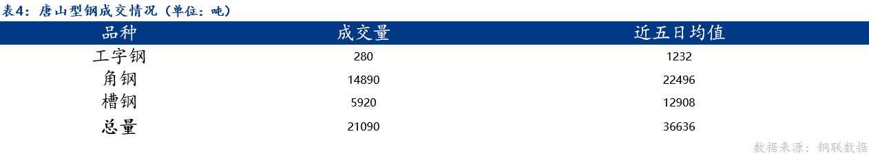 2、成交量为20家型钢厂当日成交,其中包括工字钢6家、角钢7家、槽钢7家。