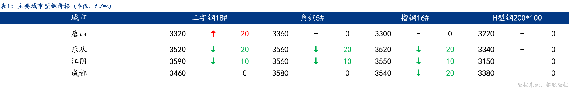 今日型钢价格持稳运行,唐山槽钢、角钢、H型钢价格较上一交易日持稳,工字钢价格较上一交易日上涨20元/吨;乐从、江阴工字钢、角钢、槽钢价格较上一交易日下跌10-20元/吨,H型钢价格较上一交易日持稳;成都工字钢、角钢、槽钢、H型钢价格较上一交易日持稳。