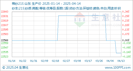 4月14日生意社棉纱21S基准价为22533.33元/吨