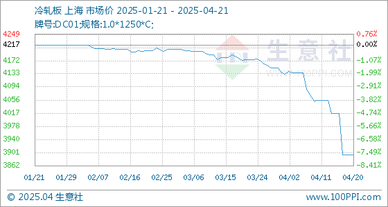4月21日生意社冷轧板基准价为3895.00元/吨
