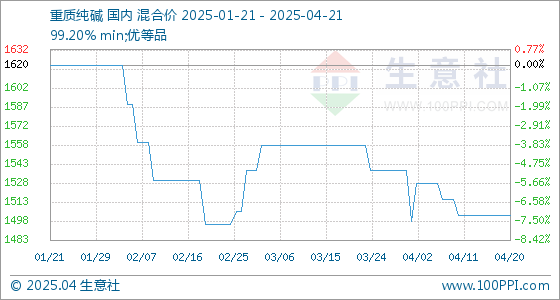 4月21日生意社重质纯碱基准价为1502.50元/吨