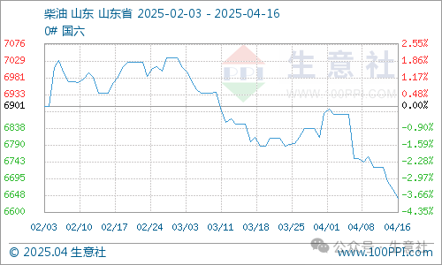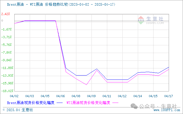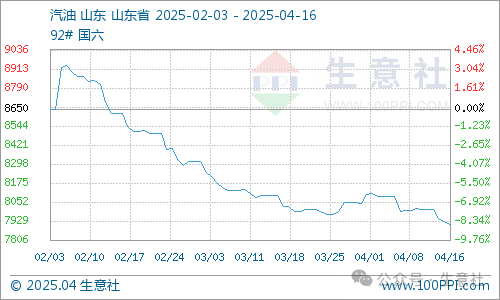 本周期内原油价格走势下滑,一方面美国增加关税,增加了全球对原油需求的担忧;另一方面,地缘性问题对于原油市场影响力度减少,OPEC+产油国预测全球石油需求将下滑,此消息利空原油市场。截止17日,第十个工作日原油品种变化率为-9.45%,对应国内汽油下调480元/吨,柴油下调465元/吨,折合每升下调92#0.37、95#0.39、0#0.40元。