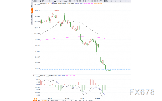 特朗普再掀关税风波致美元指数跌至98.30,创2022年3月以来新低,美联储态度转趋谨慎