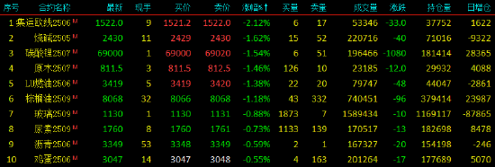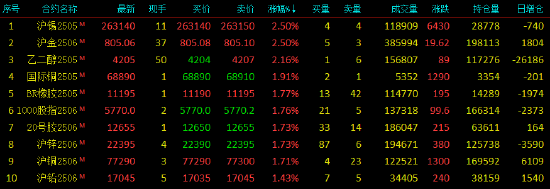 国内商品期货多数收涨,沪金、沪锡、乙二醇涨超2%;集运欧线跌超2%,烧碱、碳酸锂、原木、棕榈油跌超1%。