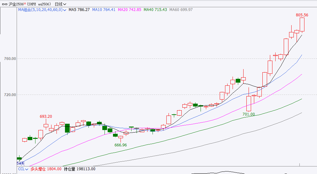 周一亚盘,黄金再创历史新高,外盘comex黄金站上3400关口上方,沪金突破800整数关口,大涨2.5%,日线11连阳。