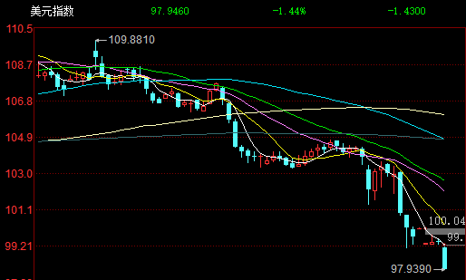 4月21日,美元指数一度暴跌1.4%。一度跌破98关口。