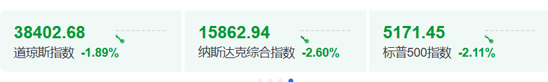 市场方面,4月21日开盘,美股三大指数大跌,道琼斯指数跌超700点,纳斯达克指数跌约2.6%,标普500指数跌超2%。