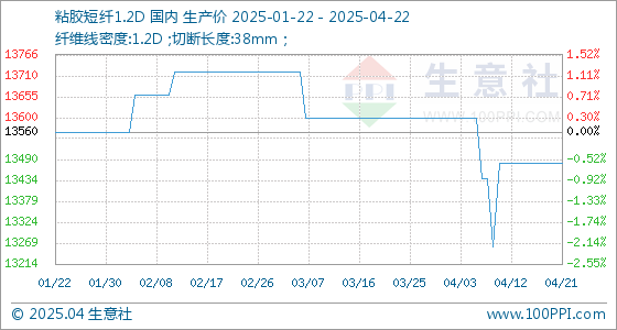4月22日生意社粘胶短纤1.2D基准价为13480.00元/吨