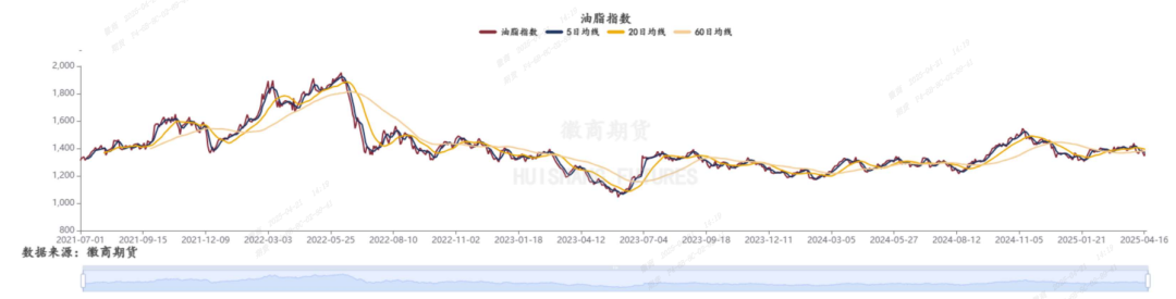 油脂指数下跌3.01%。棕桐油:近期产地棕桐油报价走弱,中印等需求国进口利润部分修复,进口买船陆续增加。高频数据亦显示马棕4月前15日出口环比增长7-17%,出口需求呈现增长态势,不过3月出口基数较低、实质出口增量有限。4月随着斋月结束、市场对棕桐油增产预期较强、4月上半月马棕油产量环比增加3.97%、相较于4月1-5日环比下降35.47,有较大改善,在斋月结束后,产地表现生良好的增产透象。综合来看,产地增产预期逐步兑现的背景下,棕桐油价格逐步承压。目前棕相油05临近交割,现货有价无市,基差回归或由现货向期货靠拢,建议关注5-9价差反套。花生:现阶段油厂收购意愿不强,鲁花油厂收购表现未超预期,油厂收购质量指标严格,部分工厂退货率偏高,打压市场信心,主导行情转弱,花生市场主力需求仍以油厂为主,货源消耗渠道过于单一。产区余货宽松,随着气温的升高,对花生米储存极为不利,部分中间商信心不足积极寻找买家,但出货依然不畅。目前情况来看,供应方出货理性,供给量不大,但需求极为疲软,供给仍显宽松,短期内花生市场整体交易仍较维持清淡局面,花生行情难有起色。中期行情关注五一之后河南产区货源陆续入冷库,库外货源有效消耗后,阶段性供给将收紧,花生价格也存在阶段性反弹的可能。