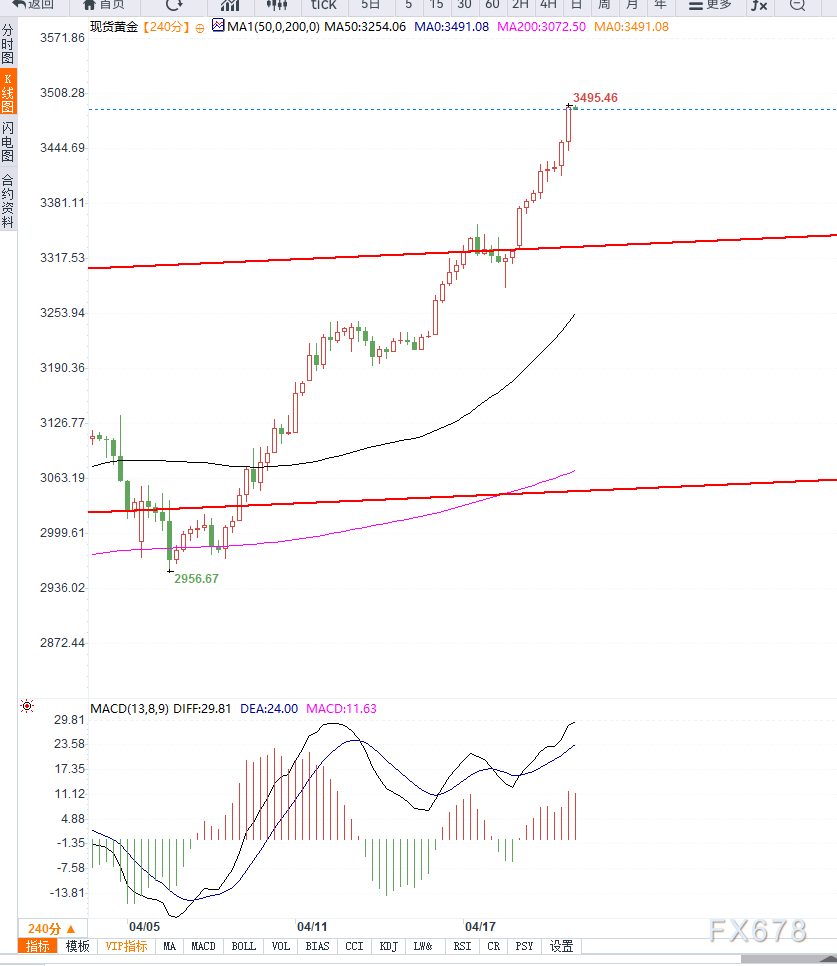 黄金逼近3500美元整数关,避险情绪推动之下再创历史新高