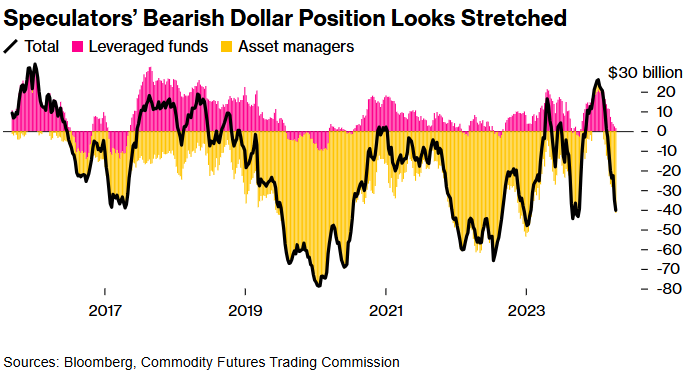 值得注意的是,投机者正在以前所未有的规模做空美元。根据CFTC最新数据,上周美元兑10种主要货币的净空头仓位激增至400亿美元,创下去年10月以来新高。