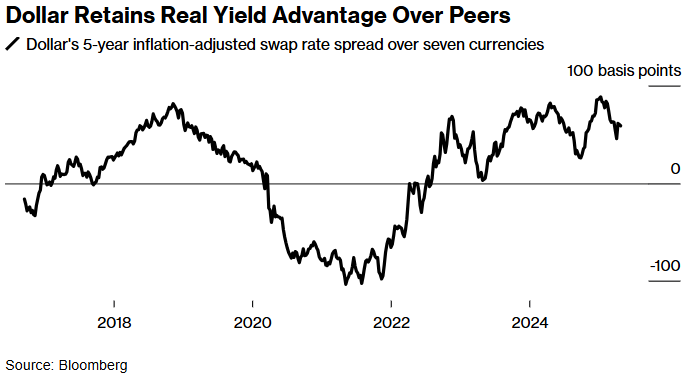 在负面消息充斥之际,仍有关键数据支撑美元基本面。美联储最新报告显示,截至4月16日的两周内,海外央行及主权基金增持美债超100亿美元,显示国际储备管理者仍在逢低吸纳。此外,经通胀调整后,美元兑主要货币仍保有收益率溢价,这对国际资本仍具吸引力。