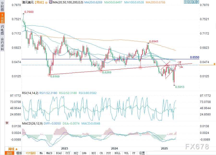 澳元兑美元分析:周线多头动能增强,关注关键上升趋势线