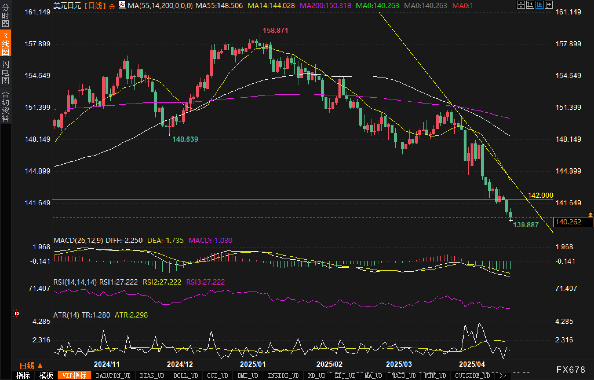 若美联储内部分歧进一步加剧,或美国方面继续释放更多关税层面的不确定消息,则美元走弱态势可能延续,美元/日元或进一步下探下方支撑。短期内,如确认失守140.000一线,则需关注139.880一带,这一价格带若被进一步跌破,空头动能或迅速加强。