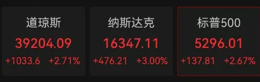 北京时间4月22日晚美股集体走高。截至发稿,道指涨2.71%,纳指涨3%,标普500指数涨2.67%。