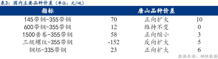355mm带钢与钢坯市场价格价差正向扩大6元/吨,螺带差反向扩大5元/吨。