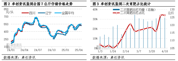 据卓创资讯监测,4月7公斤仔猪均价为548.78元/公斤,较上月环比上涨55.07元/公斤,涨幅达11.15%,仔猪价格处于相对高位,养殖端的接受程度有限。基于生长周期,4月底补栏的仔猪将于10-11月达到出栏体重,然而,市场对9-10月的猪价前景持悲观态度。此外,当下仔猪发病率较高,腹泻和蓝耳病等问题导致仔猪成活率偏低。鉴于上述多重不利因素,养殖端在仔猪补栏方面表现得更为谨慎,更倾向于二次育肥,二次育肥体量增加。