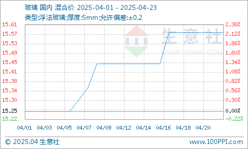 需求方面:据生意社商品分析系统显示,4月23日玻璃价格持稳,市场均价维持在15.58元/平方米不变。玻璃市场开工变动不大,装置运行平稳,下游采买按需跟进,市场交投尚可,玻璃去库缓慢,市场价格平稳运行。