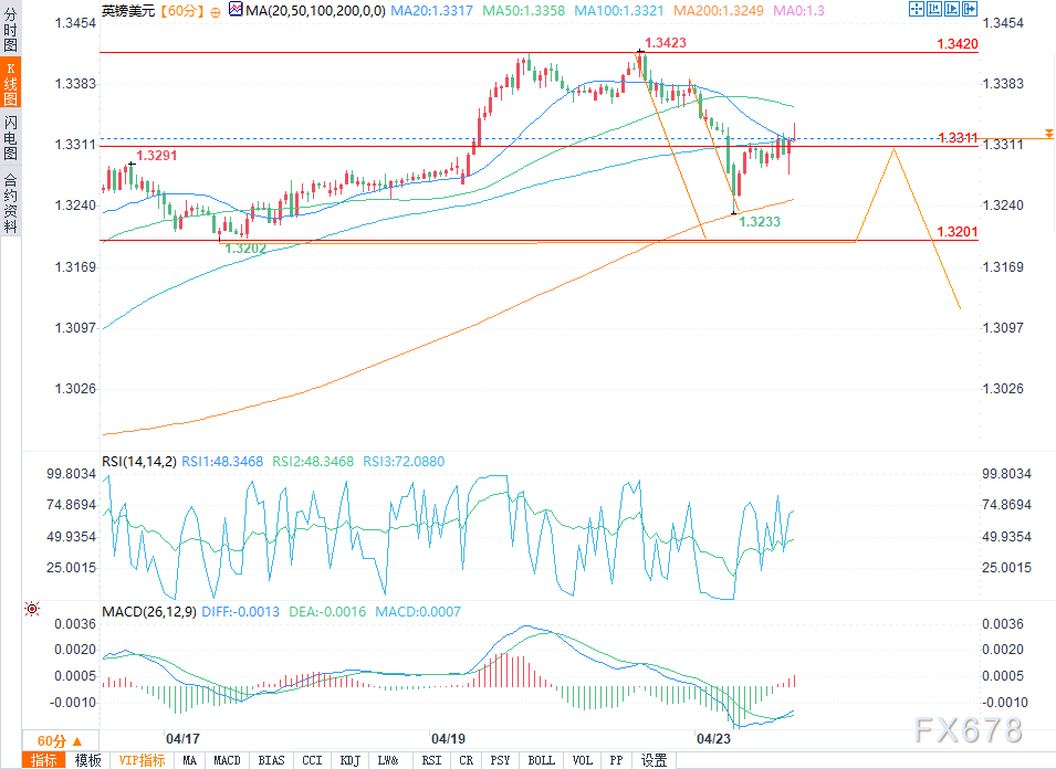 汇通财经APP讯——周三(4月23日)欧盘时段,英镑兑美元交投于1.3335附近,涨幅约0.06%,价格呈现亚盘早盘大幅下跌,随后逐步回升态势。