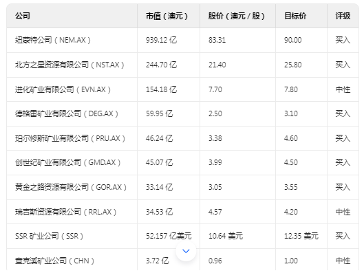 黄金仍是首选大宗商品,在澳大利亚,北方之星资源(NST)、珀尔修斯矿业(PRU)、创世纪矿业(GMD)等公司在黄金领域表现突出。