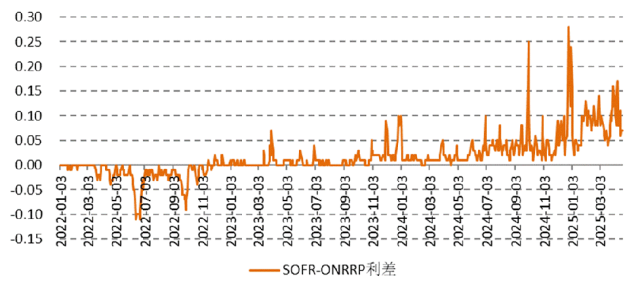 不过,目前美国“股债汇”三杀困局尚未触发流动性风险。截至4月21日,SOFR与ONRRP利差为0.07个百分点,较4月9日创下的高点0.17明显回落,但高于去年同期,这意味着回购市场出现小幅紧张,但还不会引发流动性危机。