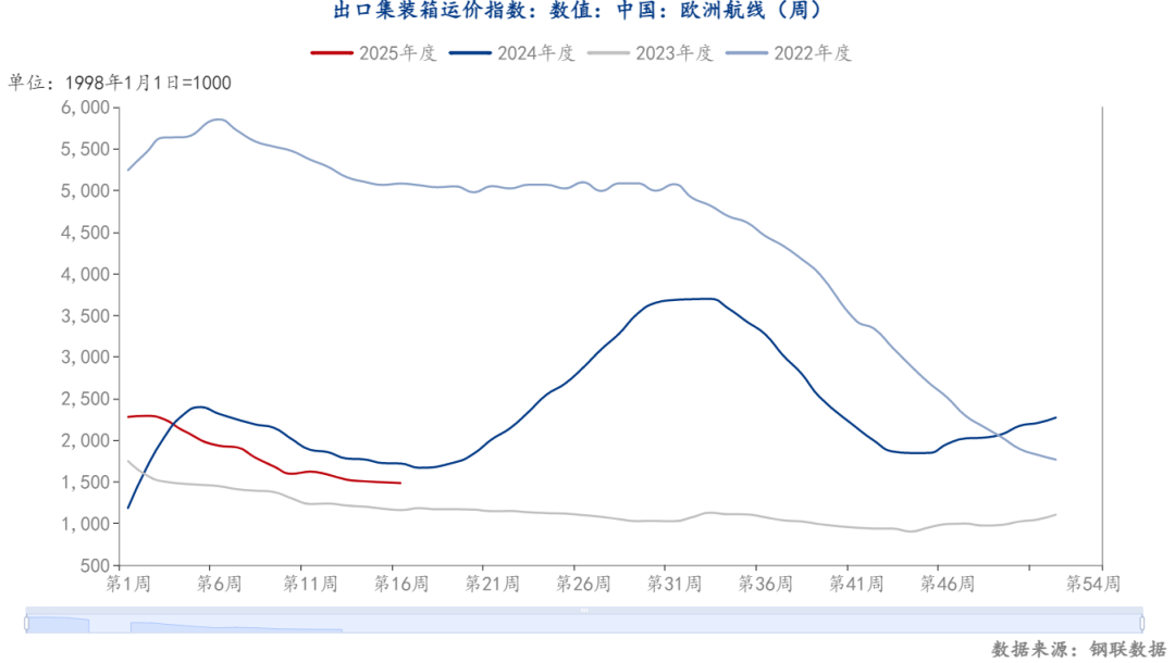 从长期视角观察,欧洲航线在供需层面已回归常态,中美贸易摩擦对其货量的冲击较为有限。不过,当前运力供应处于饱和状态,船舶舱位较为充裕。同时,航运联盟重组后,各船公司为争夺市场份额,难以就停航计划达成一致,导致空班率难以有效提升。此外,随着美洲航线订舱需求持续走低,船公司将闲置运力调配至欧线,进一步加剧了运力过剩的局面。多重因素叠加之下,欧线运价在传统旺季的上涨面临较大阻力,短期或震荡偏弱。