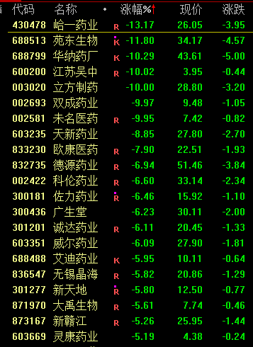 下跌方面,医药股全线调整,江苏吴中、立方制药跌停。