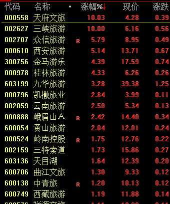 旅游板块走势活跃,天府文旅、三峡旅游涨停。