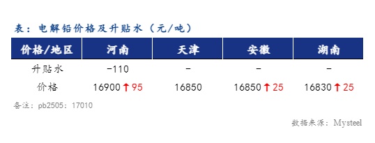 4月25日全国市场1#铅锭价格报16875元/吨,较上一交易日上涨75元/吨。炼企现货市场报价方面,其中河南济源市场持货商维持对沪铅2505合约转报贴水80-150元/吨出厂,贴水表现扩大,湖南市场炼企对铅现货均价普遍报升水继续下调,现炼厂升水报至平水至升水15元/吨出厂;安徽市场炼企对铅现货均价报升水60元/吨出厂,江西市场炼企铅现货均价报升水70元/吨出厂。